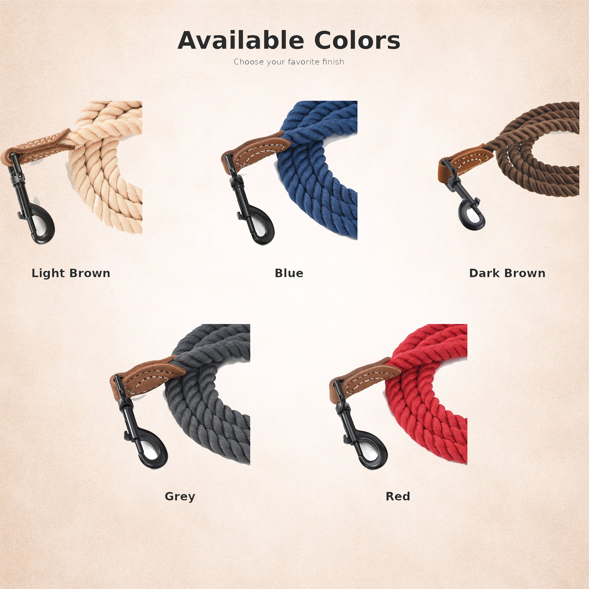Braided Cotton Rope Leashes with Leather Tip - Heavy Duty Metal Clasp, 4FT or 6FT